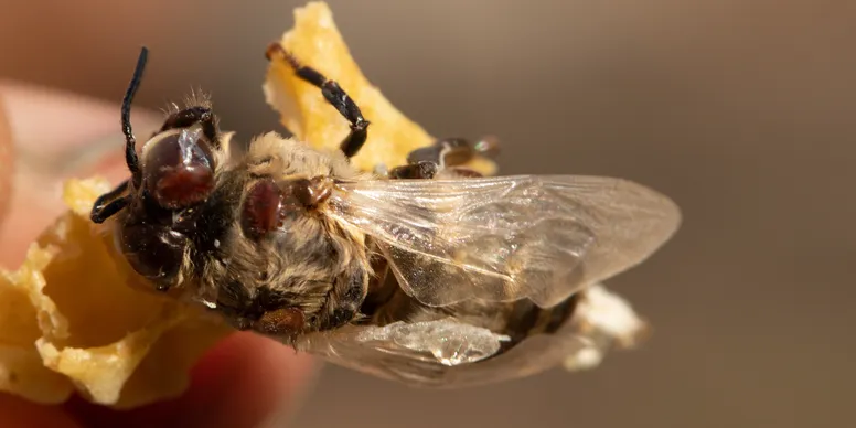 Varroa mites are parasitic mites, which require a honey bee host to survive and reproduce. The Varroa mite is only able to reproduce on honey bee brood, while only adult female Varroa mites are able to feed on adult honey bees.